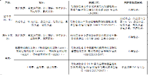 2018年省级畜产品质量安全监督抽检参数(征求意见稿)